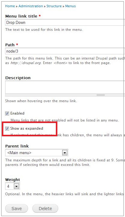 Note: To make drop down menu work, make sure you have enabled Show as expanded for every parent link.